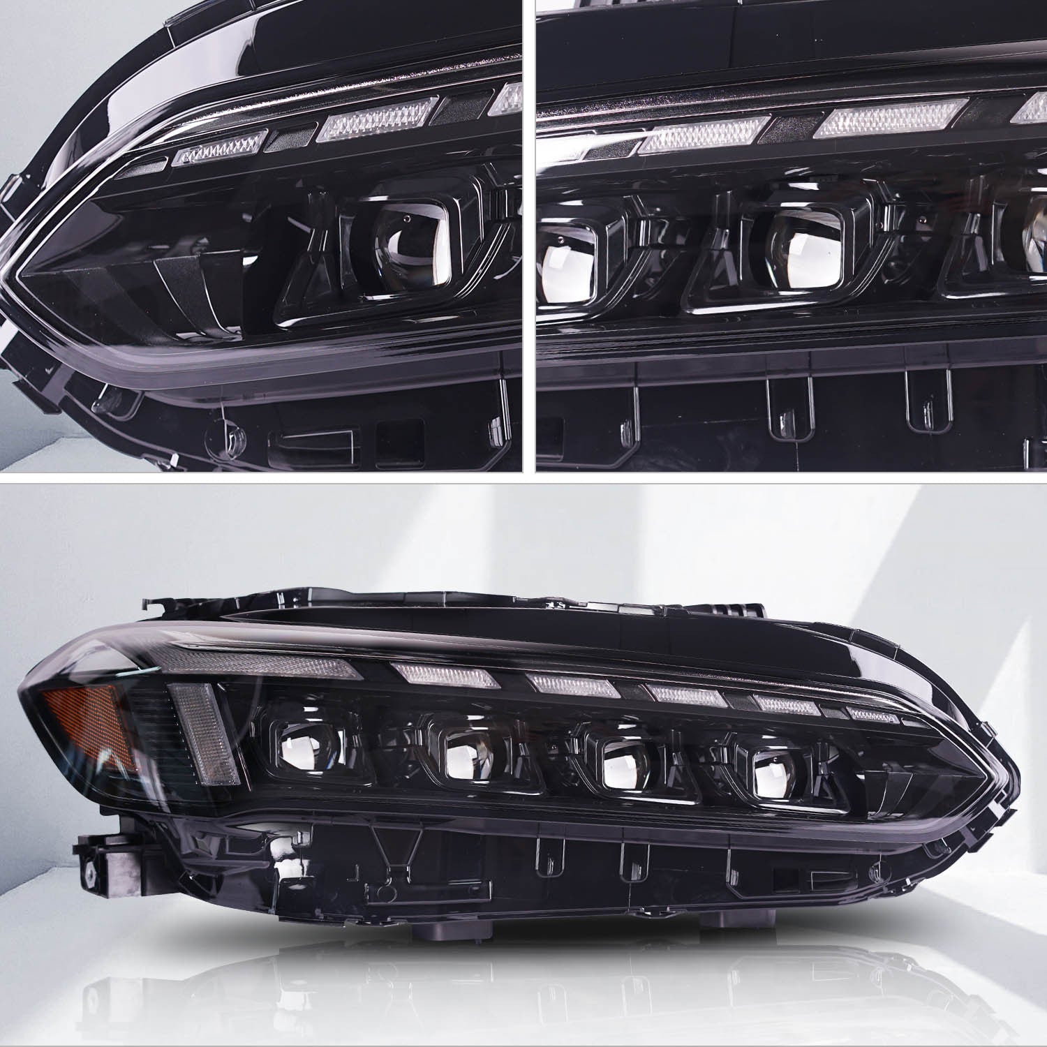 Enjoy full LED low/high beams, DRLs, and turn signals in one sleek assembly. Brighter, more energy-efficient, and longer-lasting than halogen or HID options. -