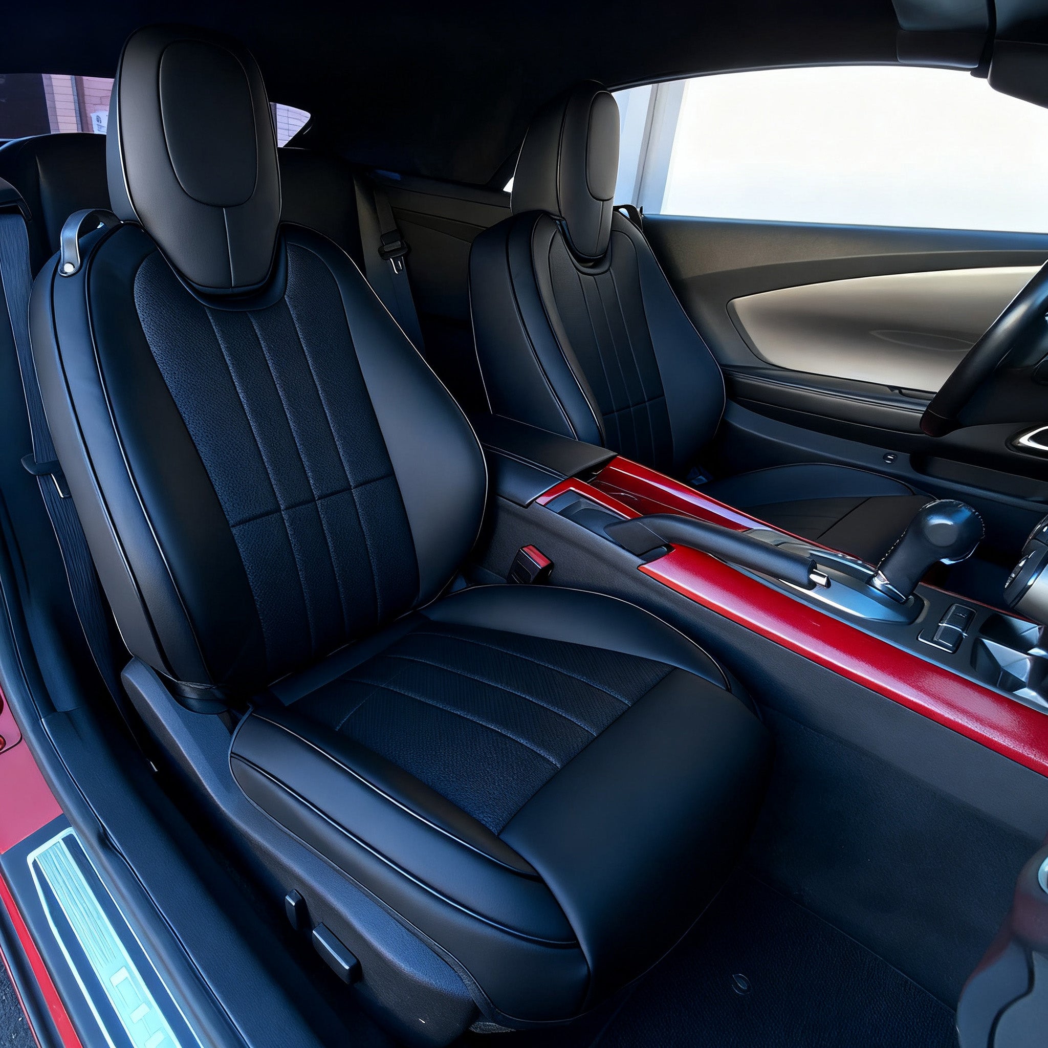 360° full leather wrap with airbag and seat belt openings—luxurious comfort and safe protection for your Chevy Camaro.
