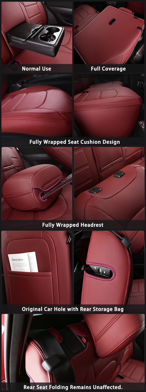 The seat cover sizes of the entire vehicle, including the second-row headrests and seat cushion backrests, are perfectly matched.