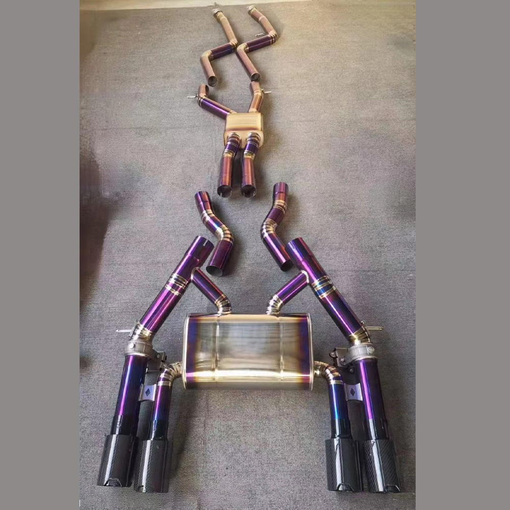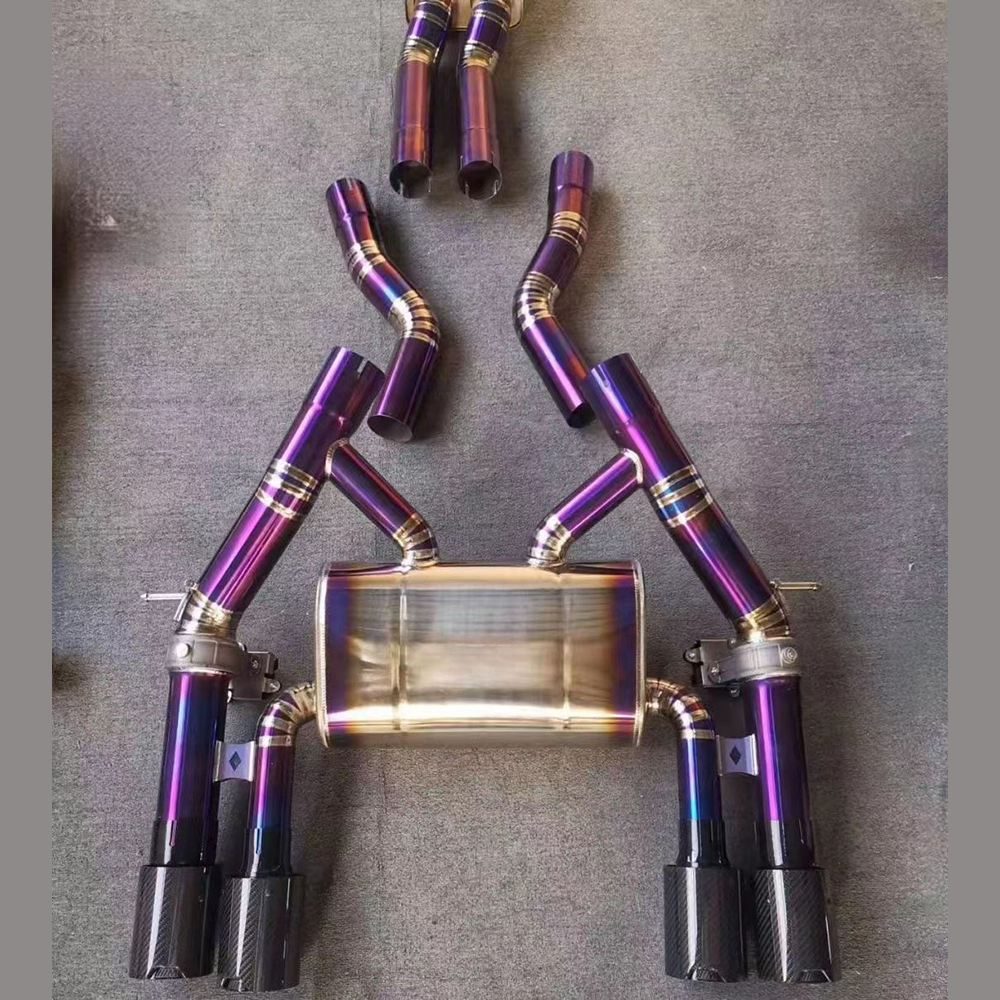 Upgrade your 2014–2020 BMW M3 F80 or M4 F82/F83 with a valved exhaust system made from ultra-lightweight titanium. Featuring front pipes and a mid-rear section, this setup delivers reduced backpressure, quicker throttle response, and a rich, high-pitched tone. The electronic valves allow you to switch between refined and aggressive sound modes, providing full control over your driving experience. Finished with dual burnt titanium tips for a bold, motorsport-inspired look.