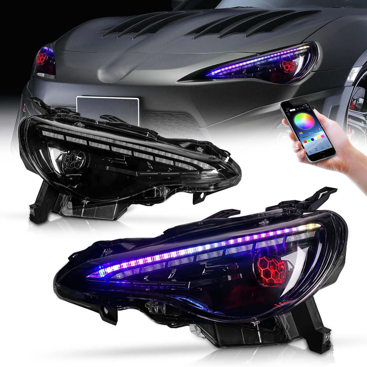 The Toyota 86, Subaru BRZ headlights offer five lighting effects: white DRL, RGB Start-Up Animation, low beam, high beam, and sequential turn signal.