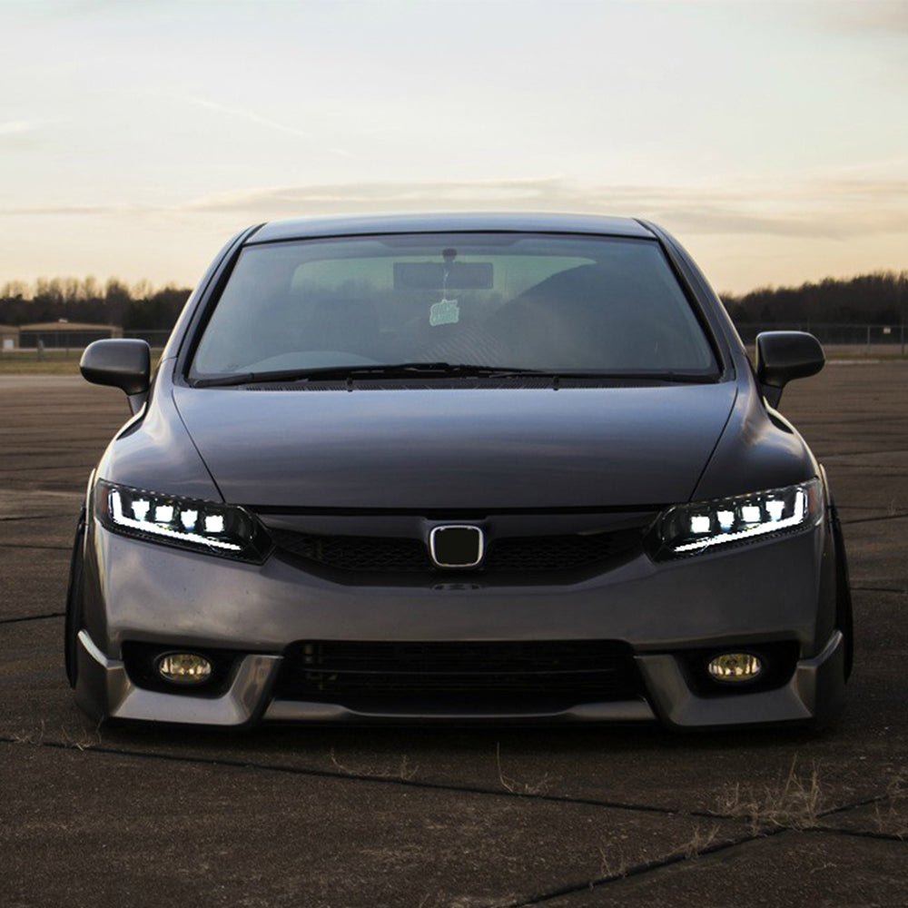 Full LED Headlights for Honda Civic 8th Gen (2006–2011) – 4-Door Sedan Assembly with DRL & Projector Lens