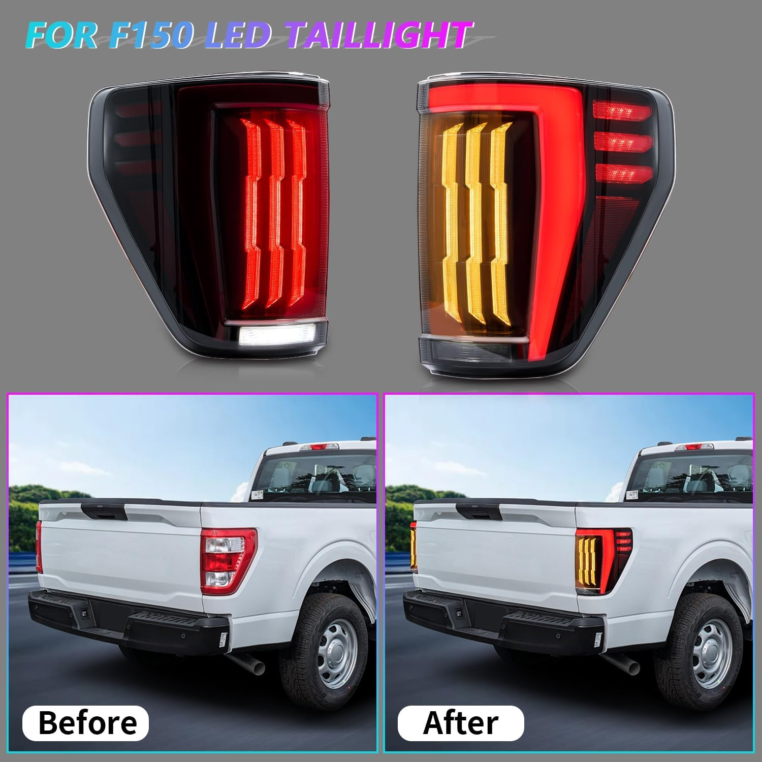 Designed for Ford F-150 2021-2024, this easy-to-install set of LED taillights comes ready with no coding or extra wiring. Experience a brighter and more stylish ride with plug-and-play convenience! -