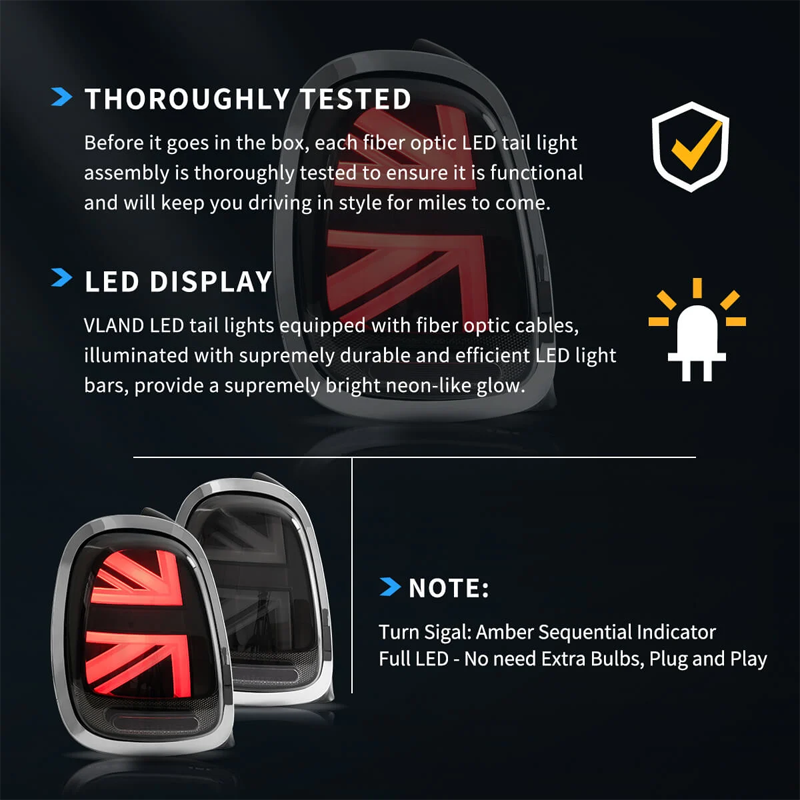 Designed for LED Taillights for BMW Mini F-Series F55/ F56/ F57(2014-2019), this easy-to-install set of LED tail lights comes ready to go—with no coding or extra wiring. Experience a brighter and more stylish ride with plug-and-play convenience! -