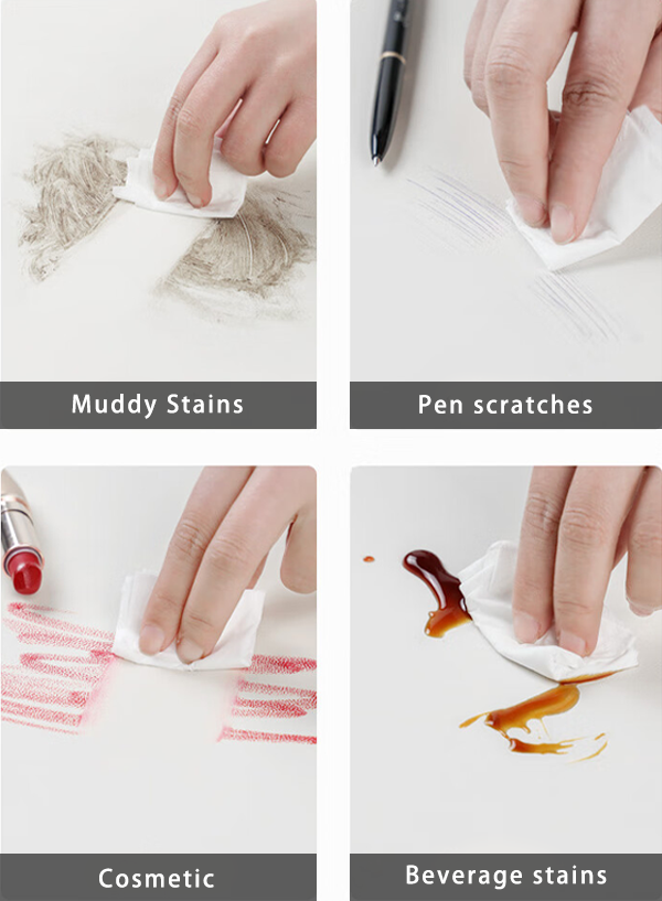 A: Cleaning is simple. Just wipe spills and dirt away with a damp cloth — tougher stains come off easily with a bit of mild soap and water.
