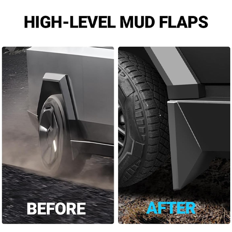 - Tailored Fit: Custom-designed mud flaps perfectly match the contours of your 2024 Tesla Cybertruck for enhanced protection and a sleek, Cybertruck-inspired look.