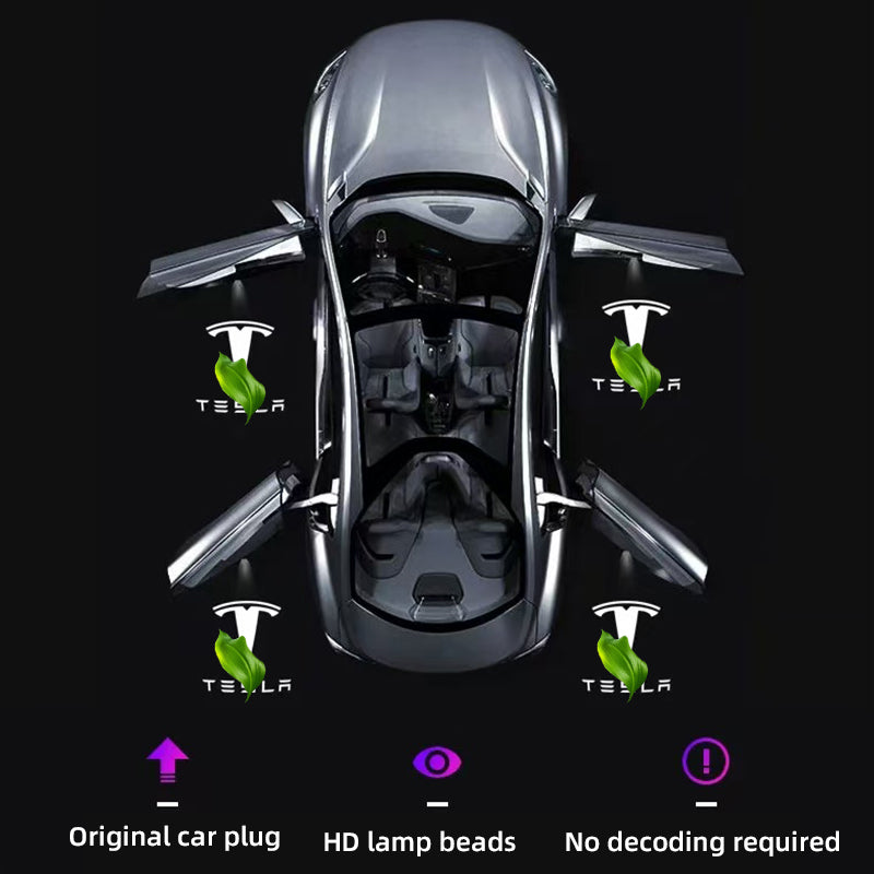 2025 Newest Design: The Car Logo Projector Welcome Light customized for Model 3 Model Y Model X Model S. It does not fall apart like other lights while installation. And it with an extension cord, which is compatible with the tesla door connector.