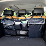 - 【Sturdy and Does Not Sagging】Made of 600D Oxford cloth and reinforced splicing, the hanging SUV trunk storage piece has good load-bearing capacity. The rear hook and loop fastener make it stick to the back seat so that it does not shake when driving.