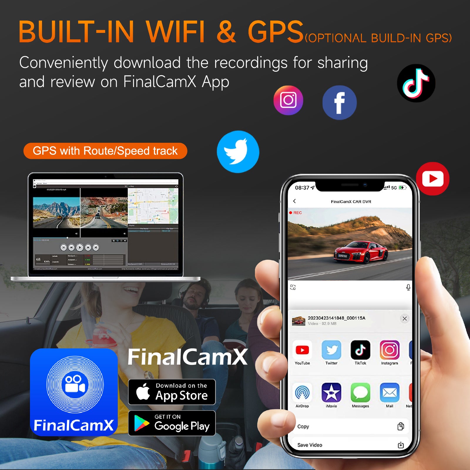 - The 4K front and rear dash cams support a free, user-friendly app. Effortlessly access recorded videos, watch live streams, adjust camera settings, and download or share footage directly to social media via your smartphone. Share your memorable journeys with friends in just a few taps!
