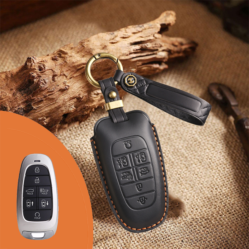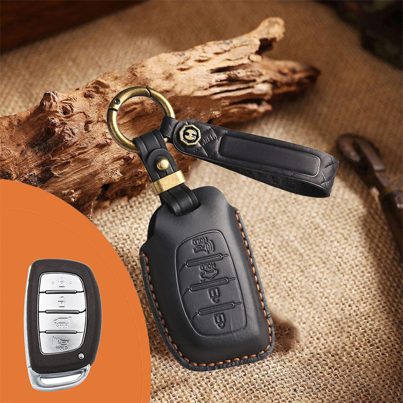 Genuine Leather Key Fob Cover for Hyundai 3-7 Button