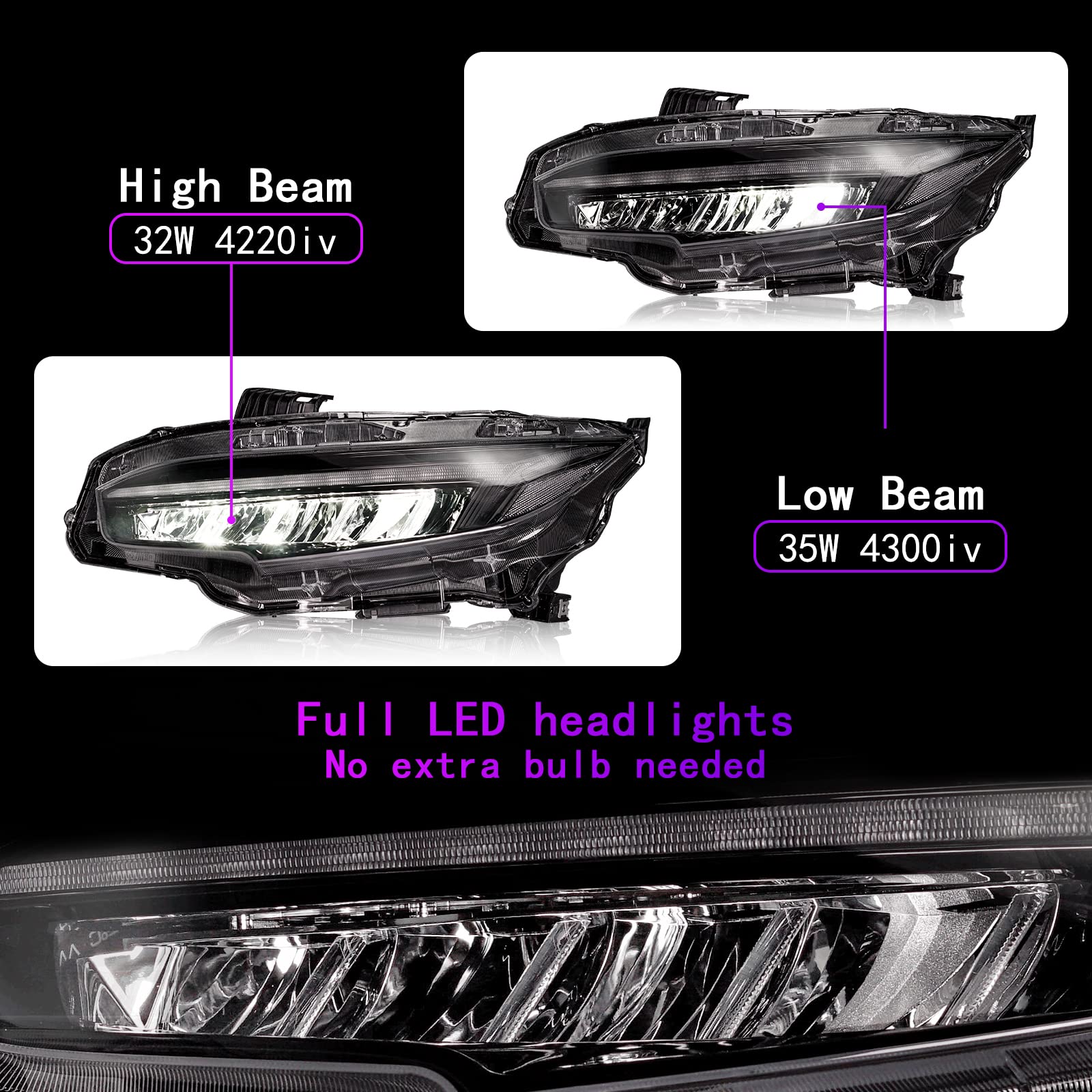 Plug-and-Play LED Headlights for Honda Civic 10th Gen – No Coding or Extra Wiring Needed, Brighter & More Stylish Ride!