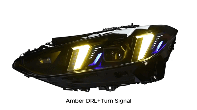 Snake Eyes Style Headlights for BMW 4 Series G22 G23 G26 G8x M3 M4 (2021 - Present) Assembly Upgrade, Amber DRL